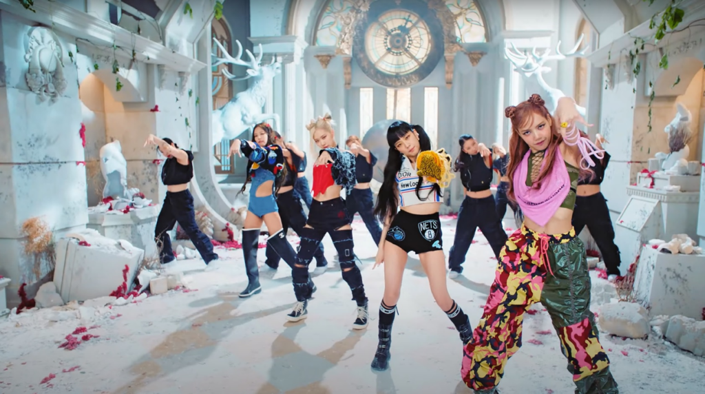 The song is described as a genre-hopping track that incorporates pop rap, dance, and EDM elements, with a focus on Korean traditional instruments, 90s hip-hop, and electropop-inspired production.